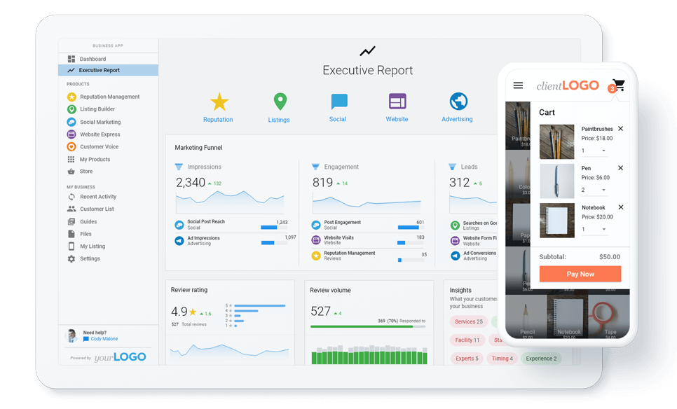 5th & Melody's online business platform helps businesses reach their goals with essential online marketing tools. Track your digital marketing performance all in one place whether its reputation management, social media, reviews, website analytics or SEO.